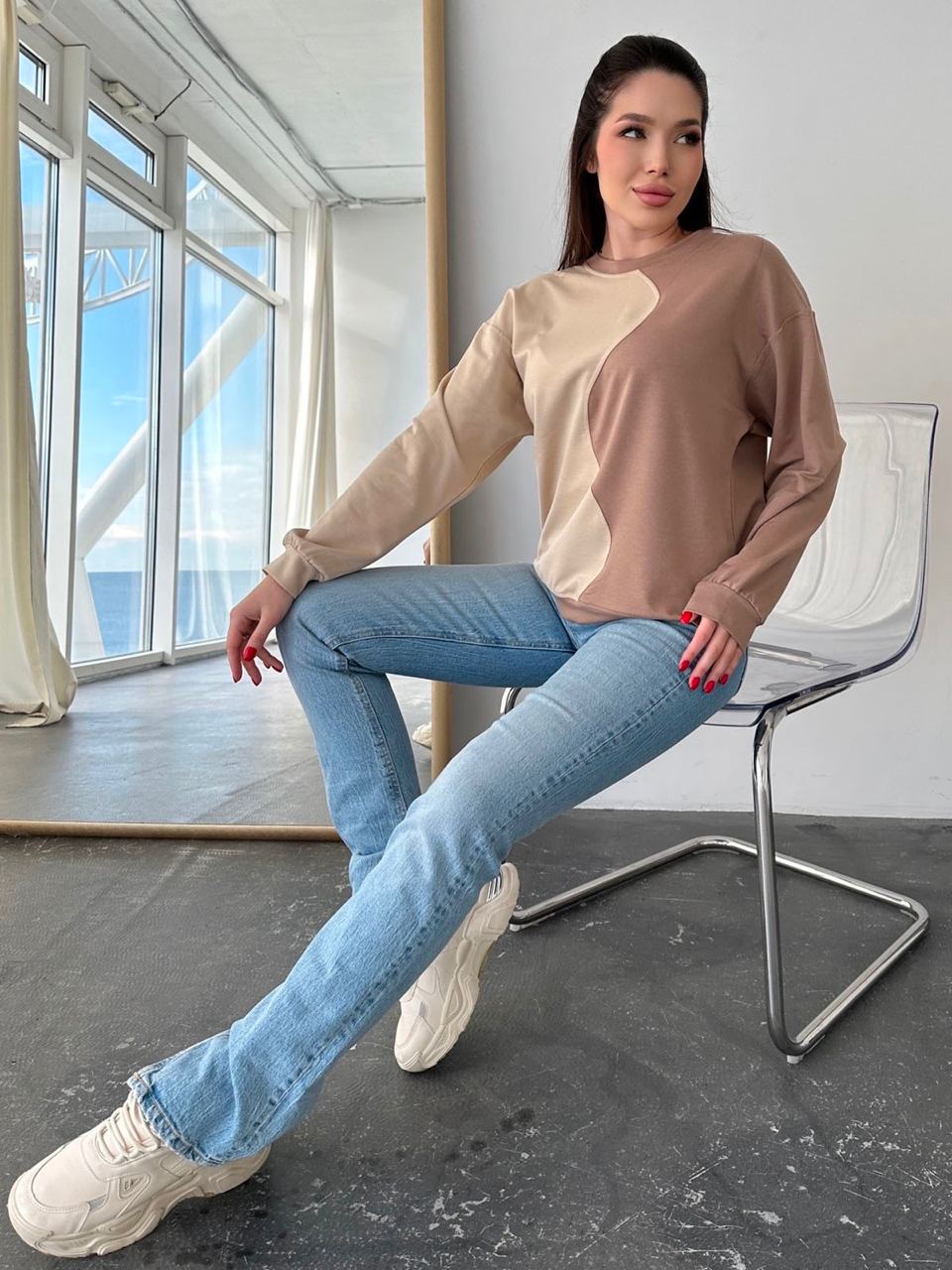 Бежевий світшот виготовлений з двонитного трикотажу з контрастною вставкою